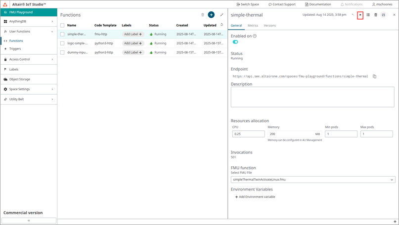/descriptionwith/inputs,/outputsor/parametersrespectively and running the request.Note: If you run the simulation itself, you need to reset the state of the FMU before you continue with the tutorial. You can reset the state by runningPUTwith/invoke/reset.