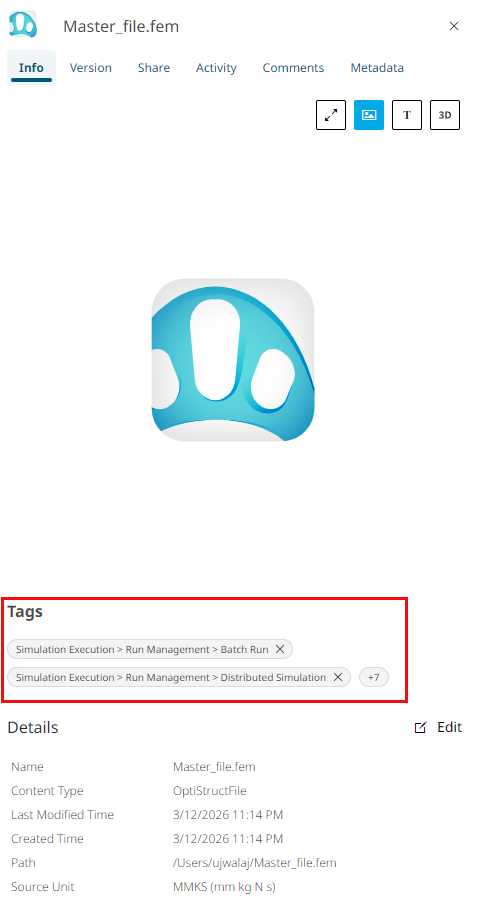 Note: You can delete tags from the Info panel based on your assigned role and permissions.