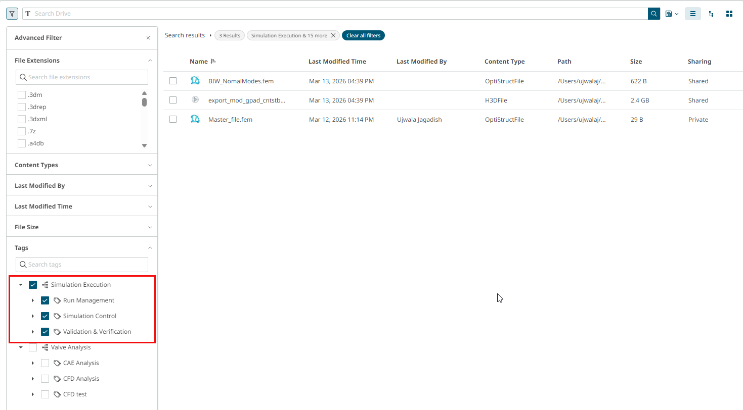 The results list displays only files and folders associated with the selected tags.Figure 3. Search using Tags