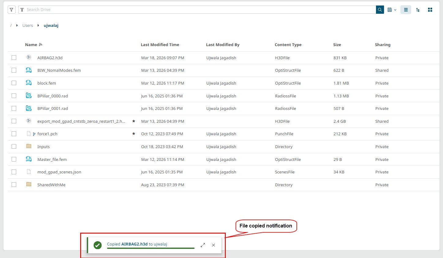 The file or folder is copied to the specified location and a notification is displayed.Figure 1. File Copied