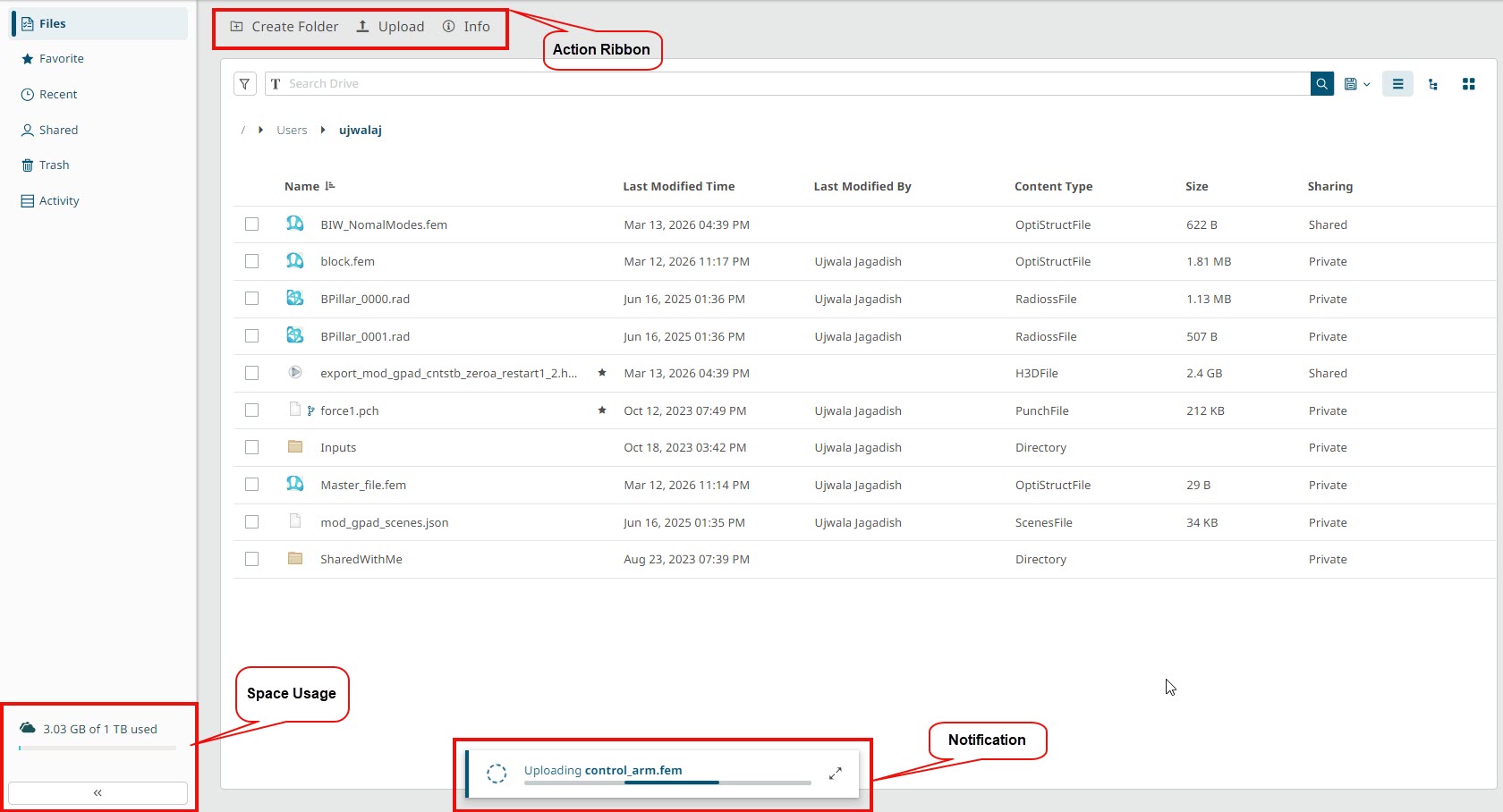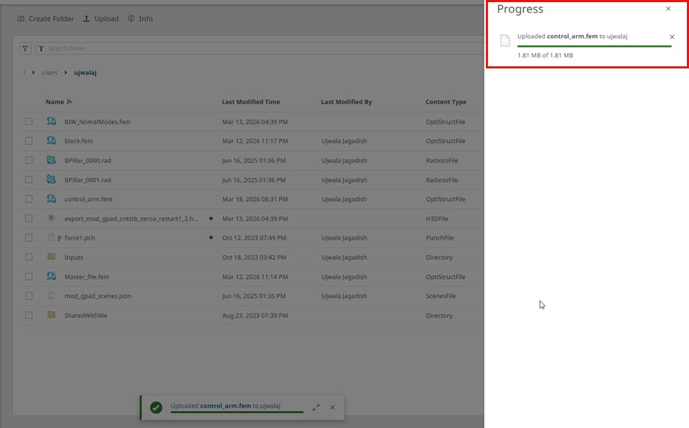 Upload a file or a Zip file to the Files tab in Altair Drive.