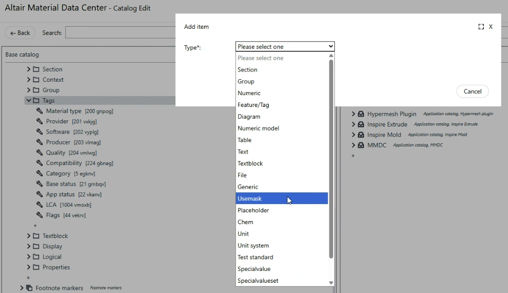 - Next, create usemask for the filters you want to define in AMDC. Select . The existing usemaks for various tags are displayed.