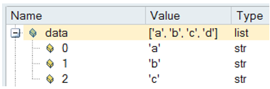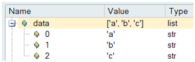 data' is updated in the Watch window, but only three elements are displayed under 'data'.