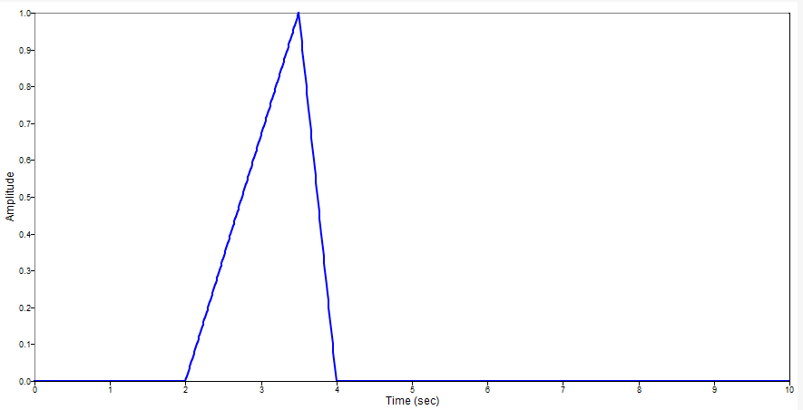Generate a sampled triangular pulse centered at zero, with a specified width and skew.