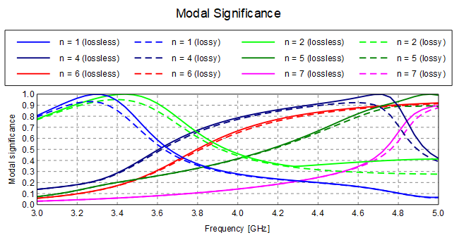 Figure 3. Comparison of the modal significance for the lossless and lossy structure.