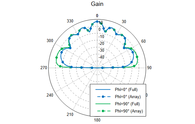 - View the gain (in dB) of the requested far field pattern using a polar plot.