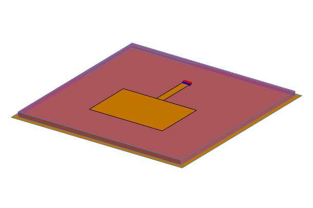 Model a microstrip patch antenna using an edge feed and a planar multilayer substrate (Green’s functions). The patch antenna is solved with MoM.