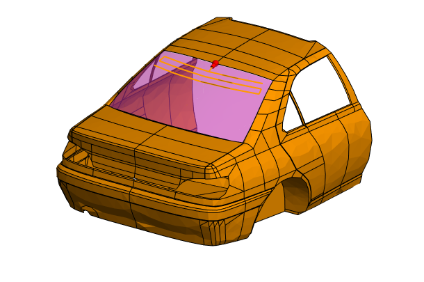 The windscreen curvature reference can consist of multiple layers with different media. Its mesh elements do not contribute to the solution's computational resources.