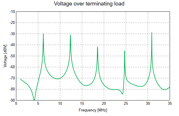 View the voltage over the terminating load on a Cartesian graph.