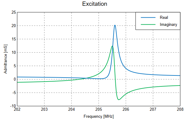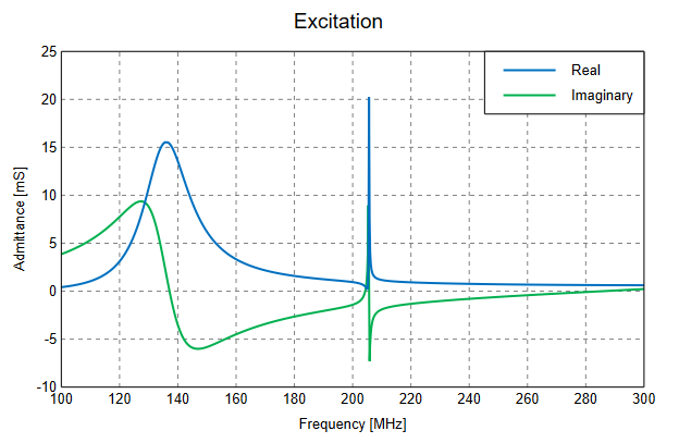 Figure 1. The input admittance (real and imaginary) of the forked