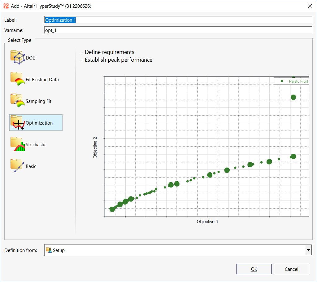 Figure 12. The Add dialog and selecting an optimisation approach.