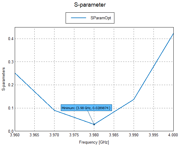 Figure 2. The reflection coefficient (S11) of the bandpass filter before optimisation from 3.960 GHz to 4 GHz.