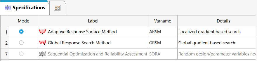 Figure 14. Selecting the Adaptive Response Surface Method.