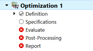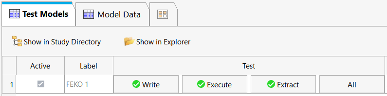 During the Write phase, the bandpassfilter.cfx_extract.lua file was copied to the run directory and executed after the Feko solver was run in the Extract phase. This generated an output file that HyperStudy can process easily.Note: The script bandpassfilter.cfx_extract.lua is different if a .pfs file was present before importing the variables and will automatically extract the visible traces on a Cartesian graph and polar graph.See Figure 9 for the completed definition run for the Write, Execute and Extract phases for the initial test run done by HyperStudy.Figure 9. Example of the completed definition run.