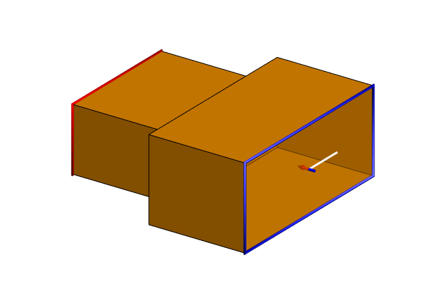 Calculate the transmission and reflection for a stepped waveguide transition from the Ku- to X-band. Use two solver methods, the method of moments (utilising waveguide ports) and the finite element method (utilising FEM modal ports).
