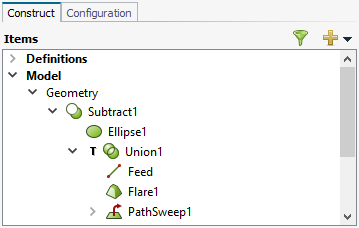 Subtract From icon. - On the model tree, a right-click context menu is available on the primitive. From the list select .