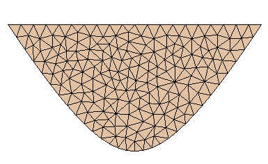 The hyperbolic border may require shorter mesh edges than those used for straight edges. The maximum edge length specified in the IP card can be overridden on the hyperbolic arc by setting Max. triangle edge length (at hyperbolic border).
