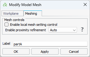 Important: Specifying proximity refinement in the model (global setting) takes precedence over proximity refinement specified on parts. - Click OK to close the dialog.