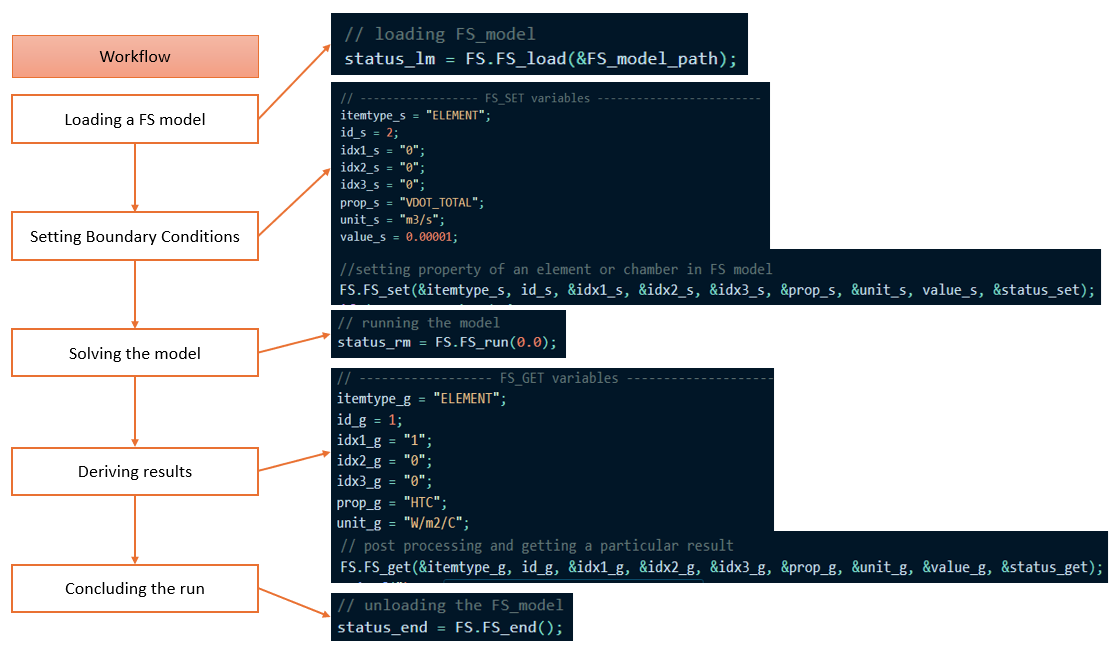 C, C++, and Fortran programing languages have been tested and examples are supplied with the Flow Simulator installation (<install_directory>/FlowSimulator/Resources/Solver_API_Examples).