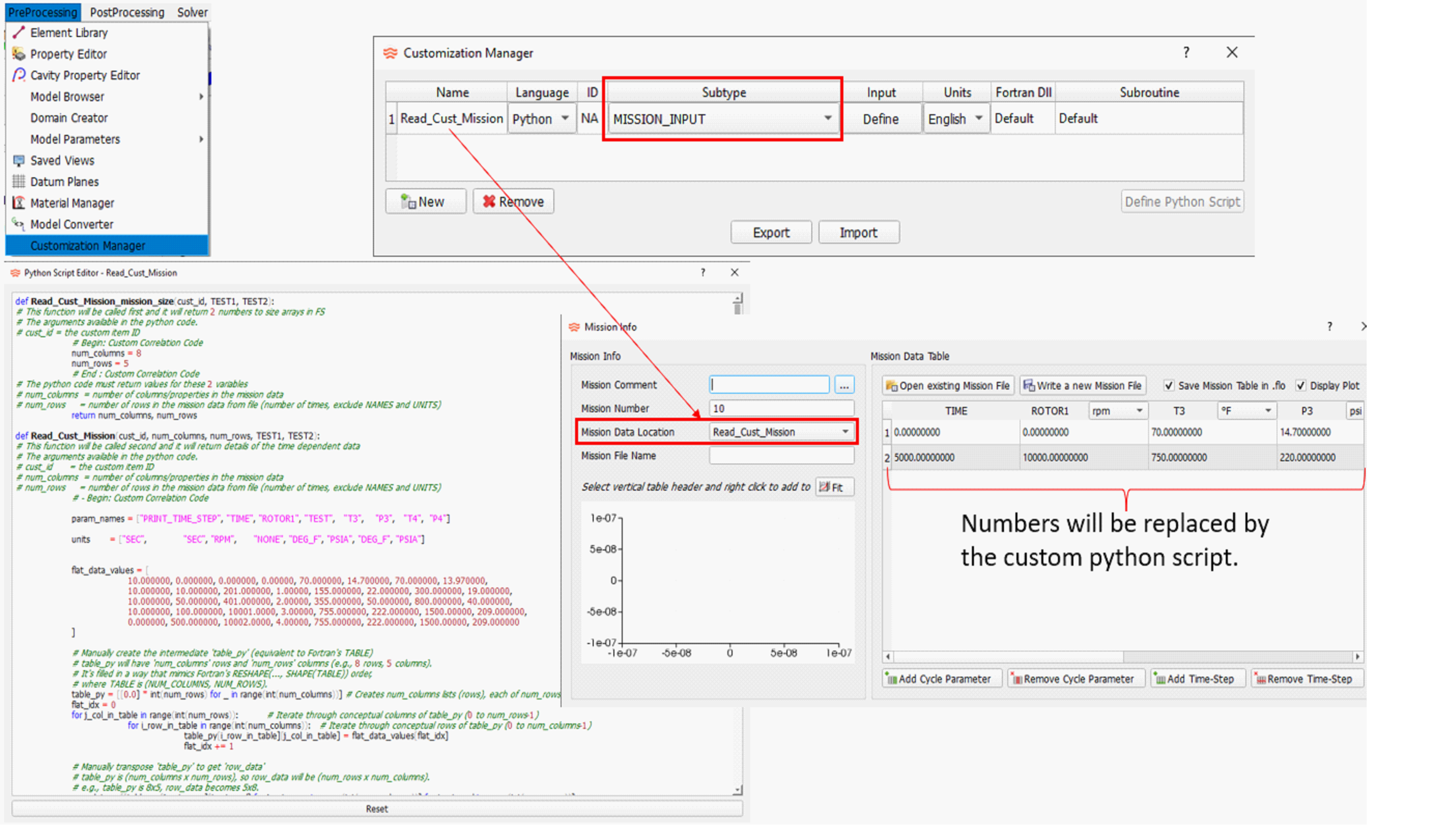 - A new subtype in the Customization Manager called Mission_Input. A Python script for a Fortran subroutine can be written to fill the mission tables. A sample Fortran subroutine (CUSTOM_MISSION_INPUT) can be found in <FlowSimulator_install_folder>\Resources\Customize\fs_custom_lib.f.