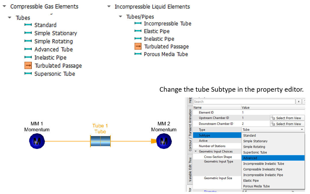 - Converting an existing tube element from one subtype to another subtype will now transfer more element input data. The geometric data, end radii, number of stations, and some heat transfer inputs will be transferred from the old subtype to the new subtype. Check the converted element to verify all inputs have been transferred.