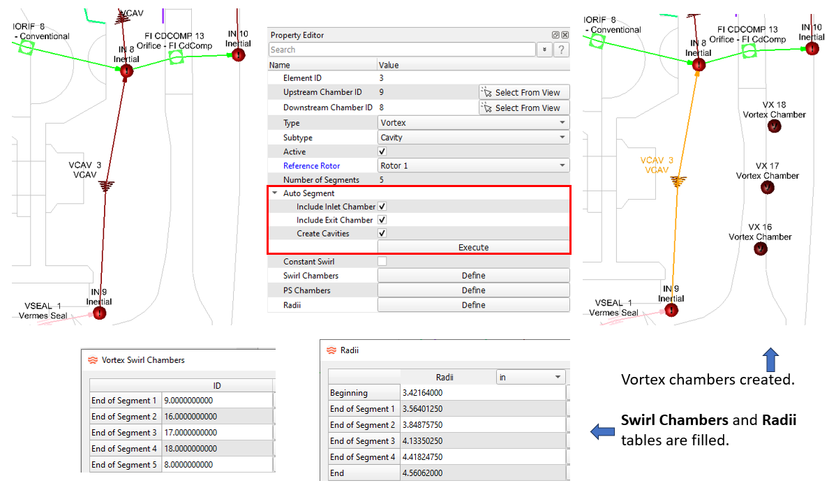 - An option for automatic segment completion has been added to the Vortex element Property Editor to accelerate model build. This tool splits the vortex element radial extent into equal segments, create chambers, and fill tables.