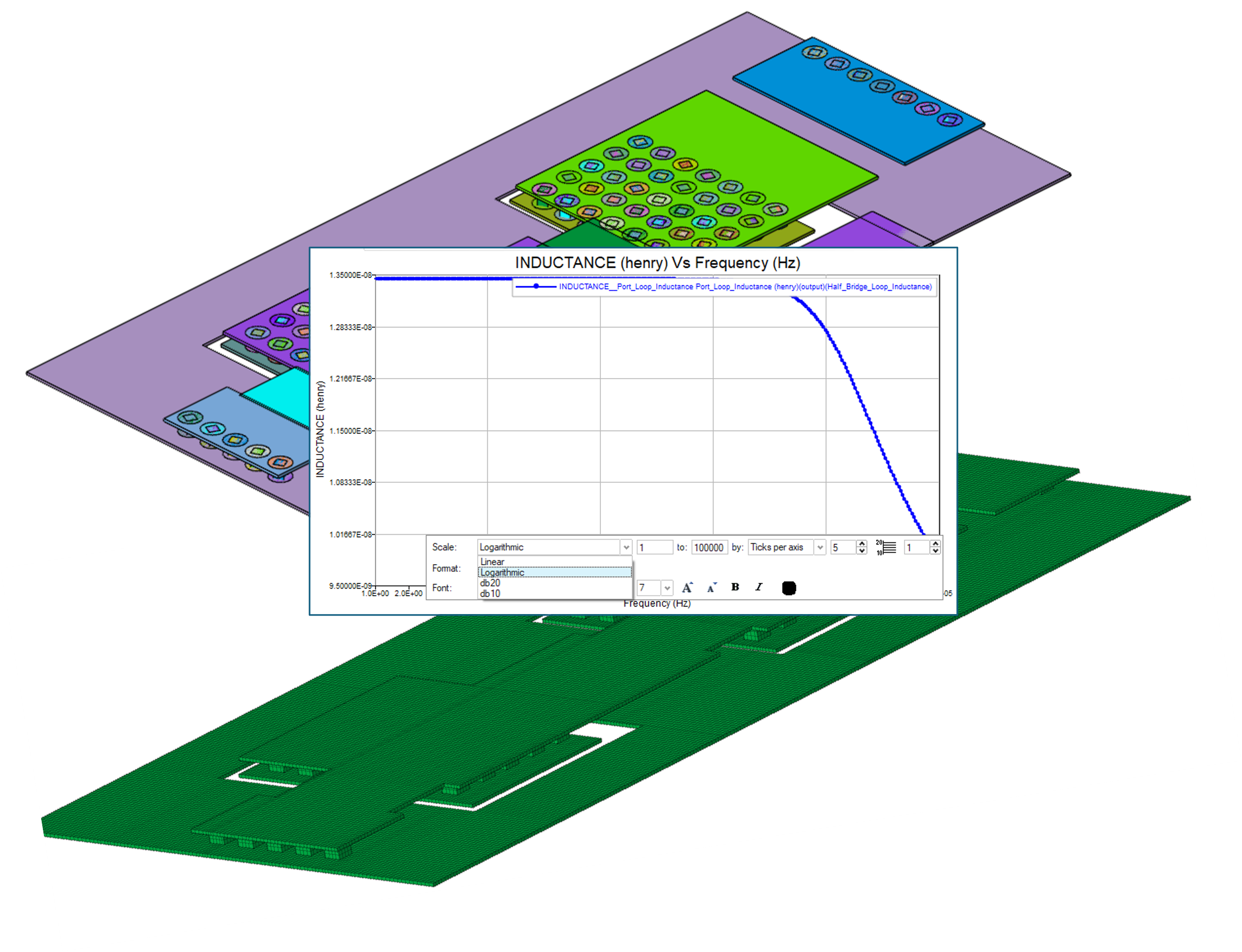 This study case computes loop inductance for dual-side ground-return routing using Impedance computation from 1 Hz to 100 kHz. ![]() |