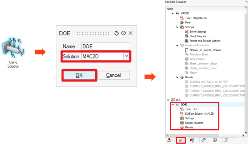 The previous basic steady-state solution can be further connected with a DoE solution in SimLab to run parameter sweeps.