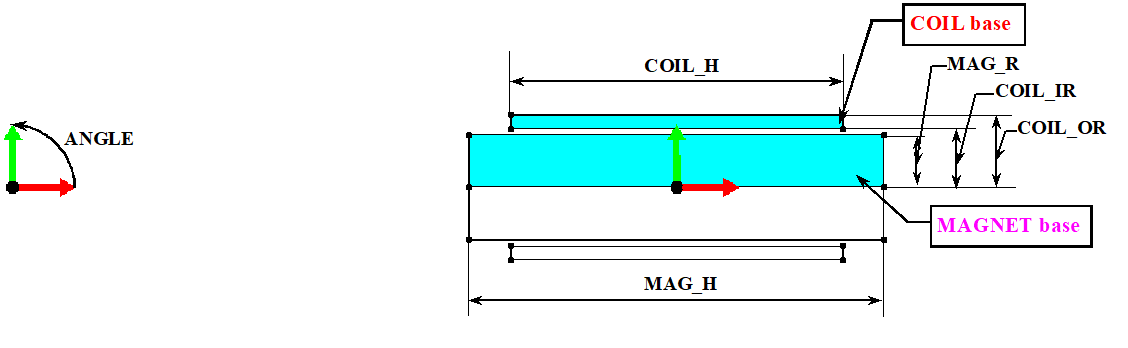 To describe the device represented in the figure below, several geometric parameters are used to describe magnets and coils.