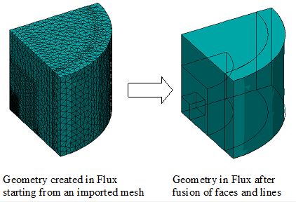 The mesh import of a quarter cylinder before and after the fusion of faces and lines is shown in the figure below.
