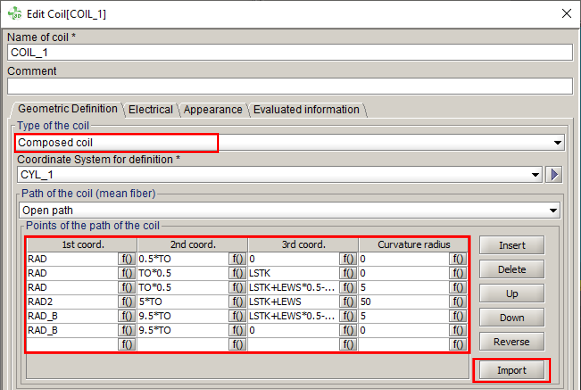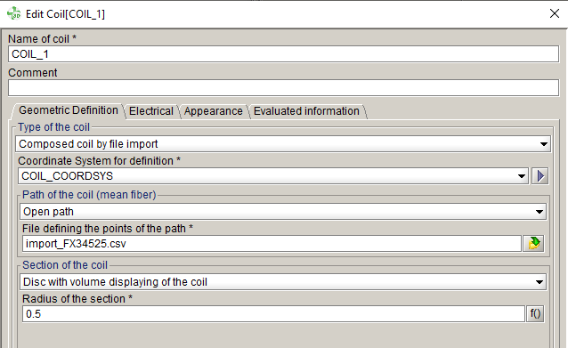 It exists 2 possibilities of creation of composed non meshed coil by import:
