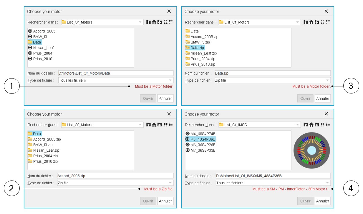 | 5 | Dialog box when importing motors from folders for visualizing the