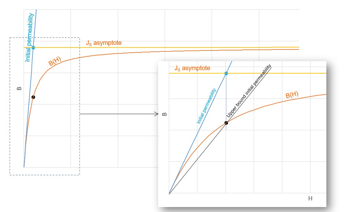 At a practical point of view, the constant magnetic permeability used in the computation is the average value of initial and the upper bound permeability defined as below illustrated.