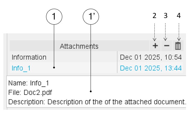 | 1 | Button (+) to add an attached document. |