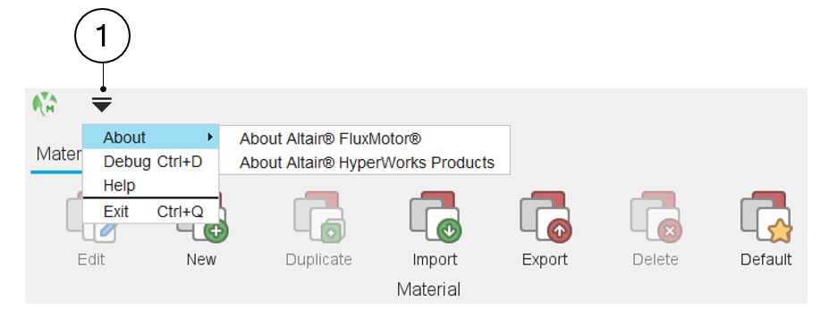 | 1 | Button to open a dialog box to define and export datasheets dealing with the considered material. |