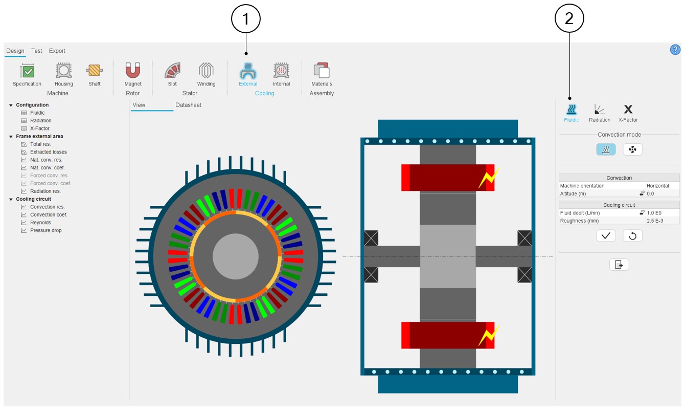 FluxMotor provides some internal models to estimate the convection occurring in the cooling circuit and on the frame.