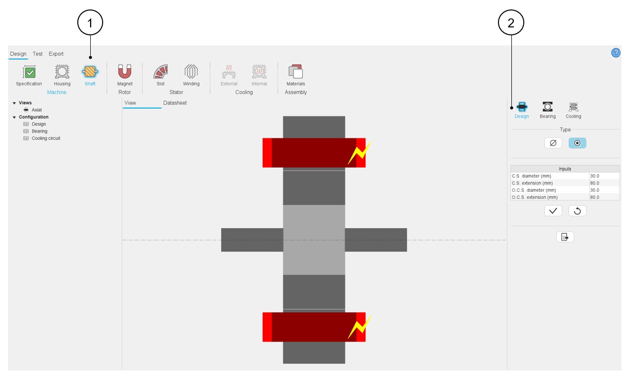 Regarding the inner rotor machine, in Motor Factory – Design / Shaft area there are