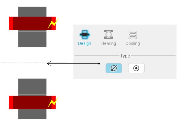 - With shaft: The shaft is represented and considered in the rotor design.