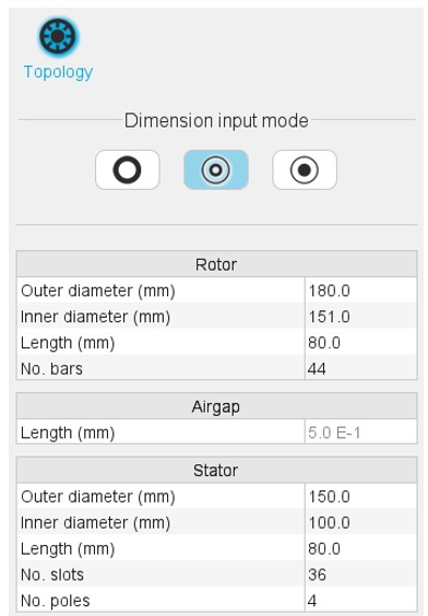 | 4 | Choose a way to define the diameters of the machine and the airgap. See the dedicated section above. |