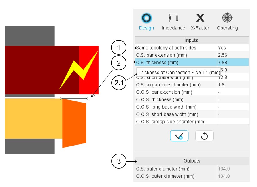 | 2 | Definition of each end-ring geometrical input, with the corresponding arrow on the axial view of the machine. |