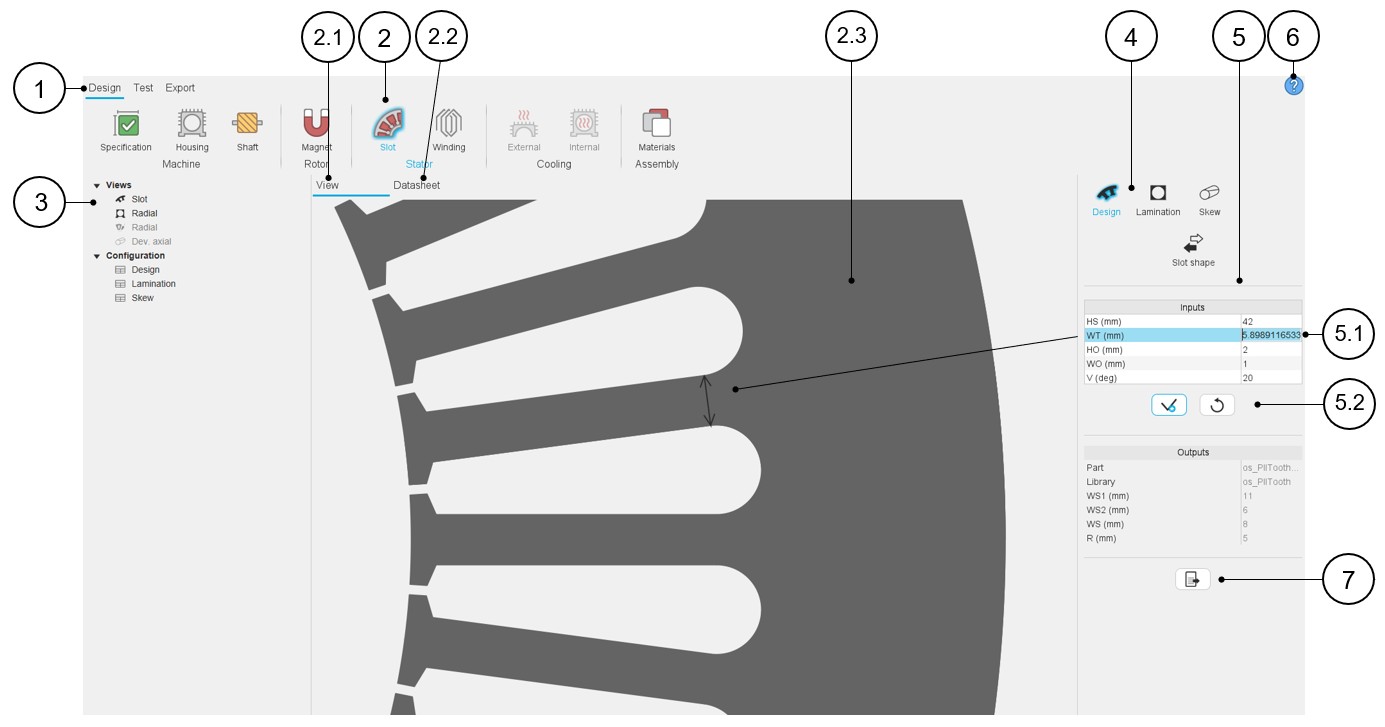 | 3 | Stator section - Access to the main functions to design the Stator and its corresponding subsets depending on the type of machine. |