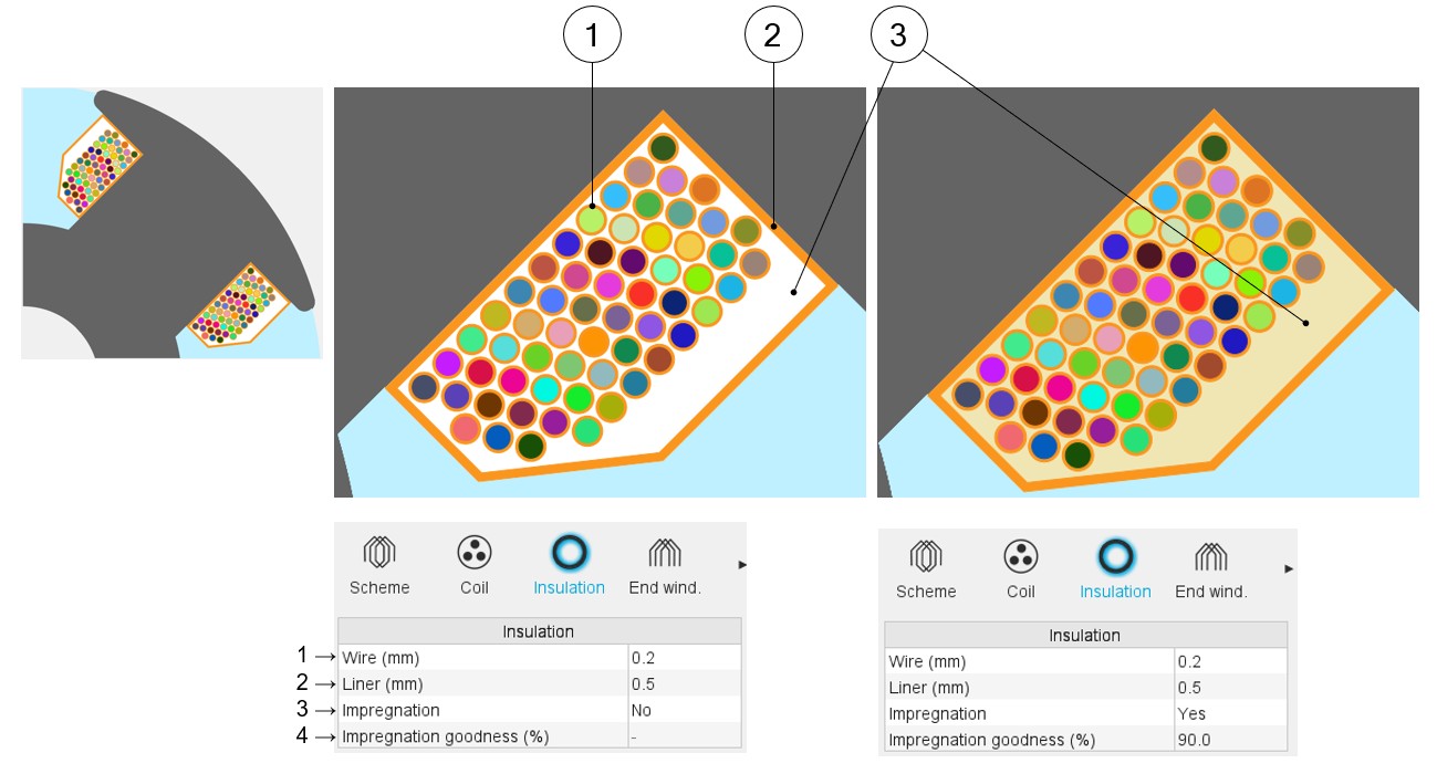 Insulation settings allow the user to describe the coil insulation (wire, liner, impregnation) and how to fill the slot.