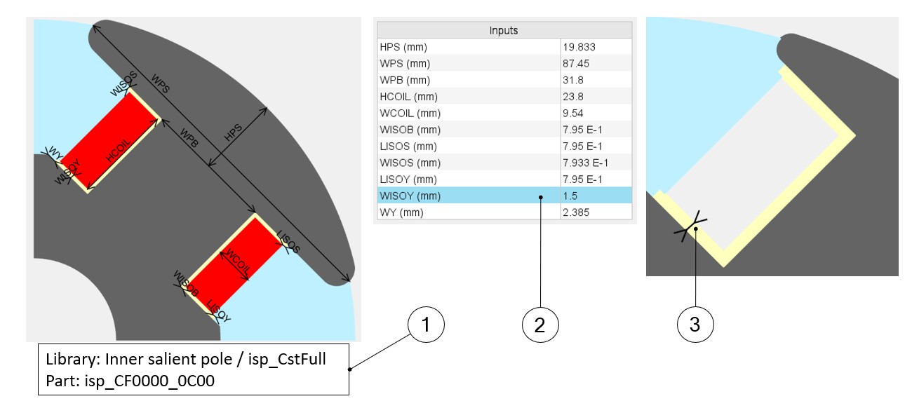 thickness of the winding on the yoke side. Use WISOB and WISOS to adjust the isolation thickness on the pole body and pole shoe sides. |