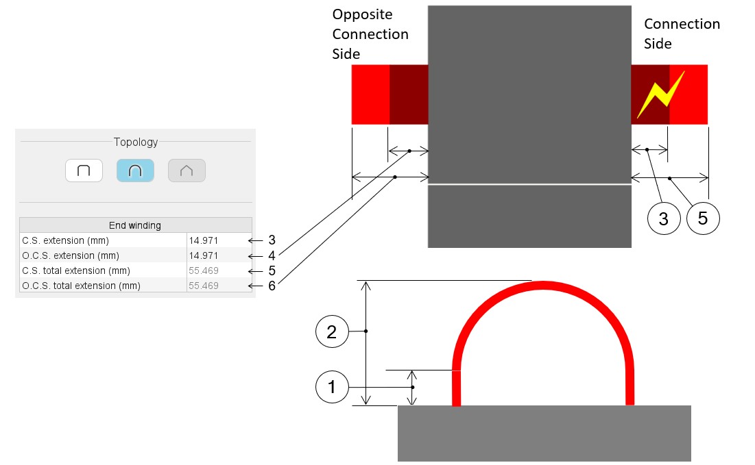 | 1 | Straight extension of the U-Shape end-winding topology = User input parameter |