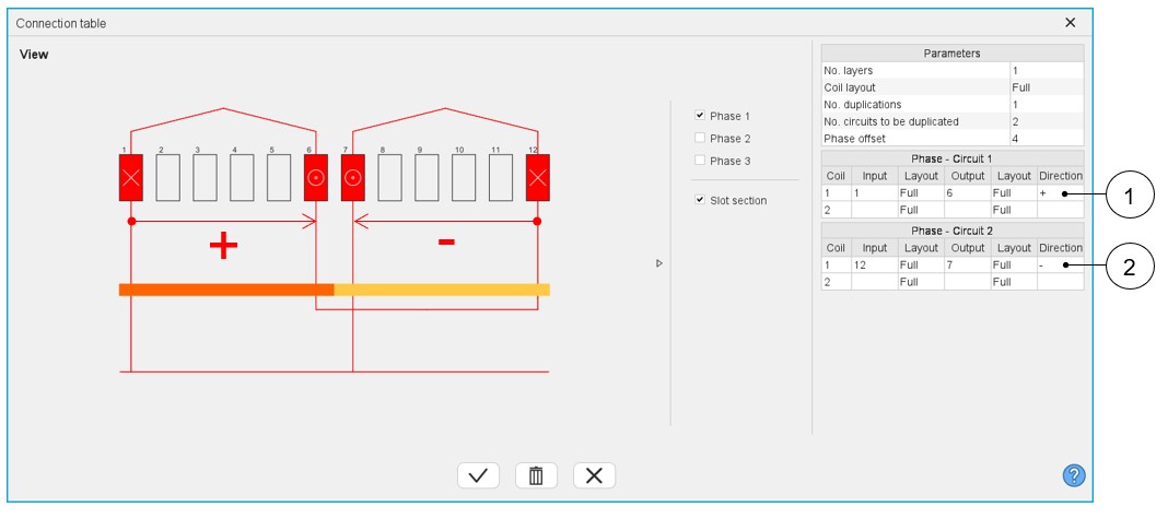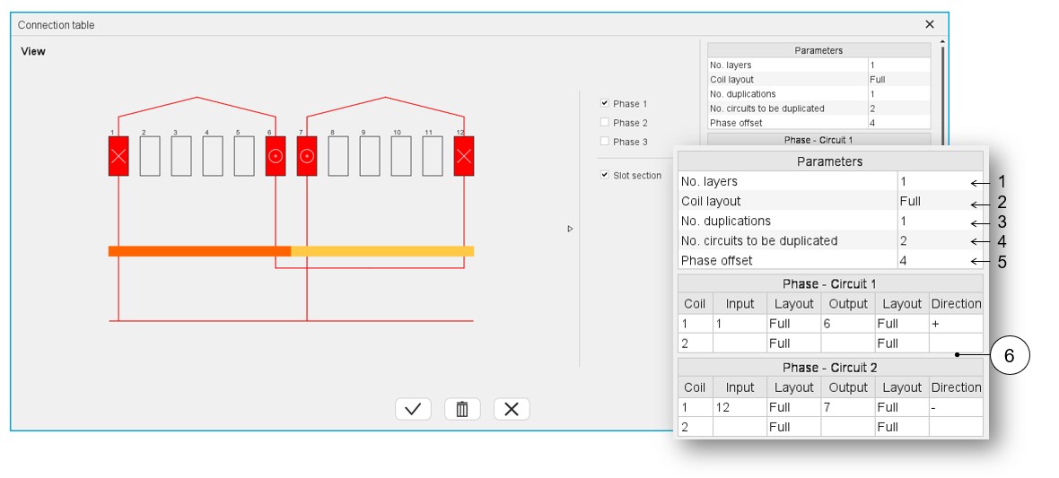 possible duplications. In that case, the connection of the parallel paths is not displayed on the layout of the winding. |