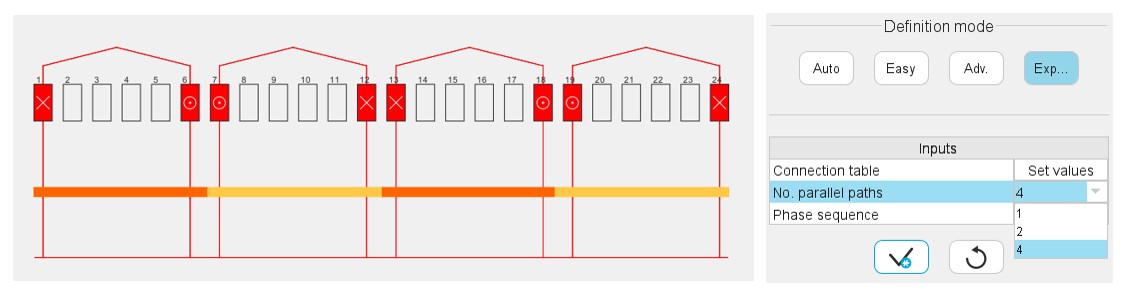 computed and proposed to the user. When the user chooses a number of parallel paths, the connections on the winding scheme are automatically updated. |