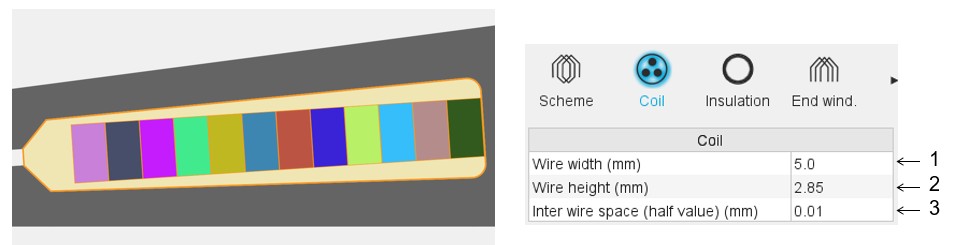 | 3 | Minimum distance between wires (with or without insulation) to be considered for modeling inside the Flux® 2D environment. This parameter allows getting a better wire distribution inside the slot. |