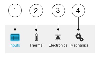 | 6 | Button to restore default parameter values (Inputs as well as the settings like Thermal, Electronics and Mechanics parameters). |