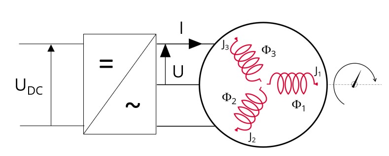 Figure 2. Voltage and current inputs of the power electronics stage and electrical machine