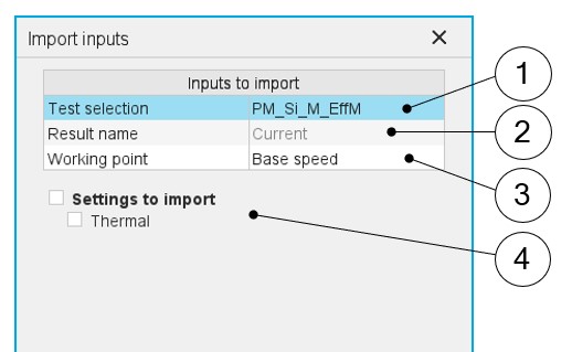 The set of inputs can be imported from another test already performed in Motor Factory Test environment.
